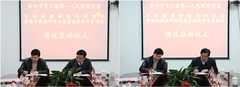 2月7日,吴江区级临床专家团队项目引进启动仪式在加勒比扑克玩法详解 行政楼会议室举行,标志着加勒比扑克玩法详解 成功引进苏州大学附属第一加勒比扑克 方琪教授神经内科团队、黄建安教授呼吸与危重症医学专家团队。吴江区卫计委副主任管罕英、医政科科长薛建英,方琪团队核心组成员、黄建安团队核心成员,加勒比扑克玩法详解 院长沈根海,副院长李根华、吴巧珍、张晓剑以及部分职能科室主任、依托科室代表出席了仪式。
