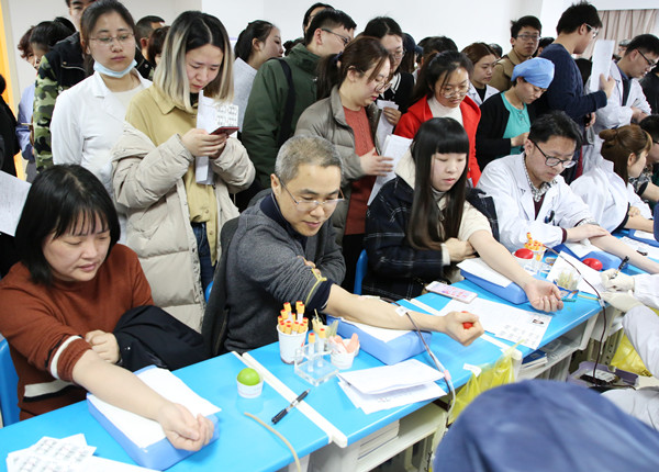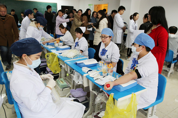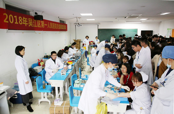 组织医护人员在7号楼5楼1号教室开展无偿献血活动,为“女神节”献上了一份特殊的礼物。