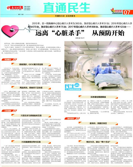 过年后,围绕心肌梗死,吴雁鸣写了一篇带有调查性质的文章。其中提到,近年来,吴江心肌梗死的发病率保持高位,因心肌梗死而丧命的患者不少。