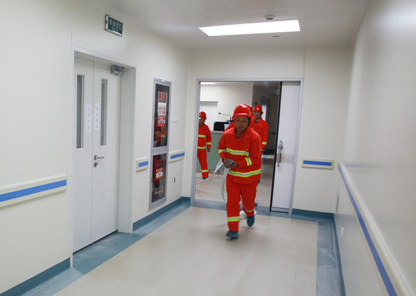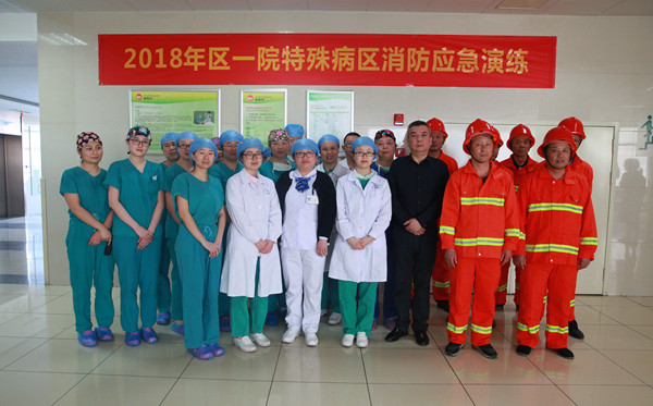 义务消防员及各特殊科室消防安全员约40人共同参加了此次消防应急演练。根据《特殊病区消防应急疏散预案》,演习人员分为指挥组、报警组、灭火行动组、疏散组、救护组、火灾现场警戒组及学习观摩组。