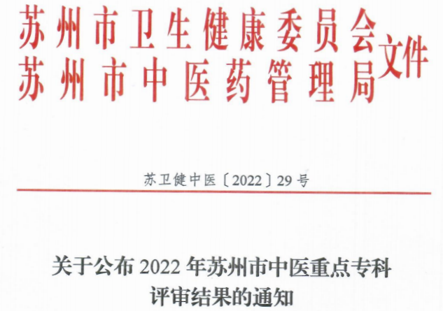 2022年度苏州市中医重点专科名单