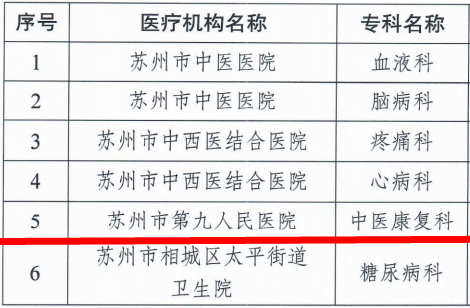 苏州九院中医康复科被确认为市级中医重点专科