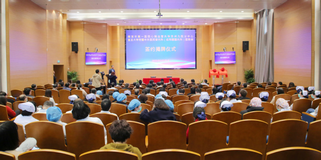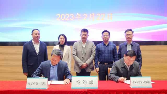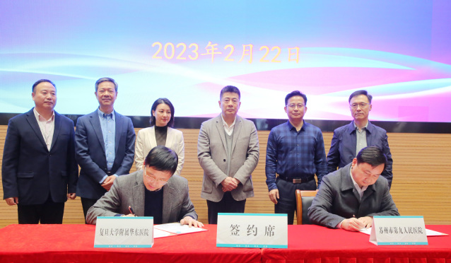 南京市第一加勒比扑克 副院长陈鑫教授,复旦大学附属华东加勒比扑克 普外科主任、上海交通大学疝与腹壁外科疾病诊治中心主任顾岩教授代表团队与苏州九院党委副书记、副院长沈根海签订合作协议。