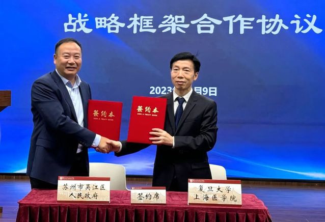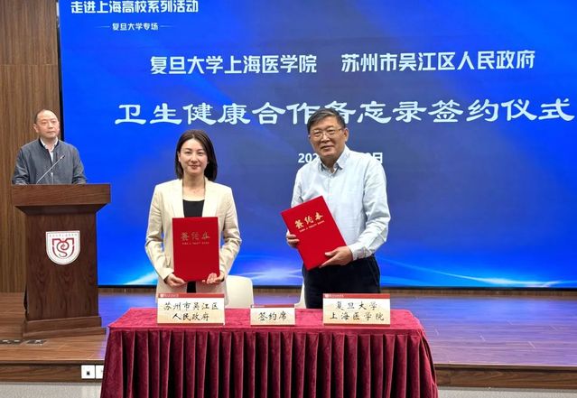 复旦大学上海医学院与吴江区人民政府卫生健康合作备忘录签约。