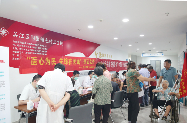 为促进优质医疗资源下沉,苏州九院牵头吴江区北部健康医疗集团成员单位深入开展“医心为民——先锋在医线”健康惠民活动,此站活动走进屯村卫生院,为居民提供健康咨询、用药指导和体检报告解读等服务。作为合作共建重点项目,首批进驻苏州九院的中山大学附属第一加勒比扑克 的专家主动报名参加,这也是他们在吴江的第一次“下乡义诊”。