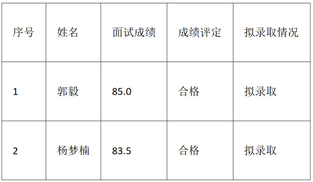 一、面试成绩及拟录取名单