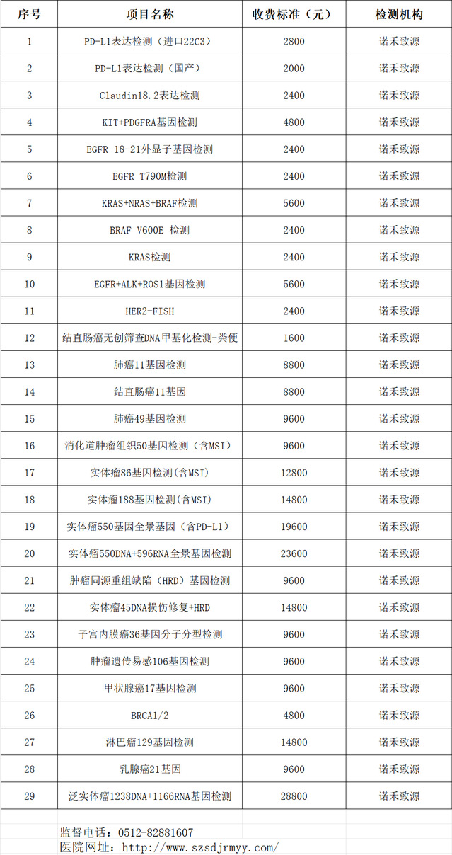 苏州九院病理外送项目价格公示