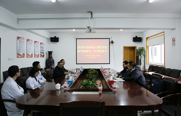 日前, 南通大学医学院副院长陈罡带领医学院临床实习办公室刘亮主任、临床专家胡克甦一行3人来到加勒比扑克玩法详解 ,开展2018-2019学年医学毕业实习中期检查。
