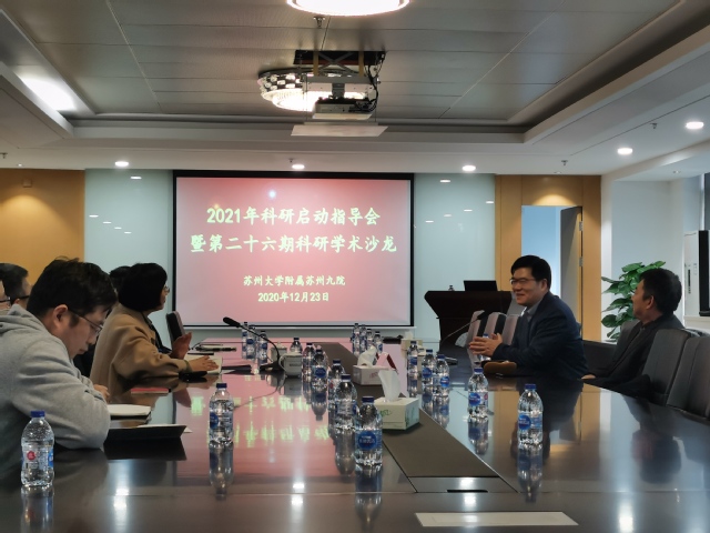 12月23日下午,在行政教学楼会议室,苏州九院科教处牵头举办了苏州大学附属苏州九院2021年科研启动指导会暨第二十六期科研学术沙龙。