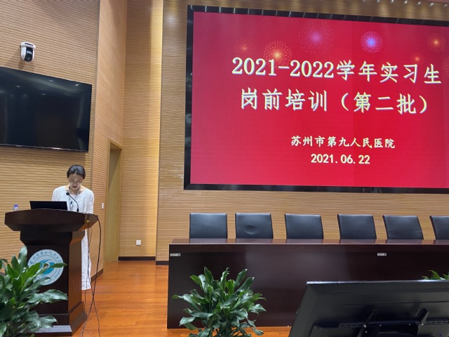 2021年06月22日至23日,2021-2022学年第二批实习生岗前培训在苏州九院学术报告厅举行,来自南通大学、徐州医科大学、江苏医药职业学院、江苏卫生健康职业学院的临床、药学、中药学、医学影像、医学影像技术、医学检验、病案管理等七大专业共78名实习生参加了集中培训。