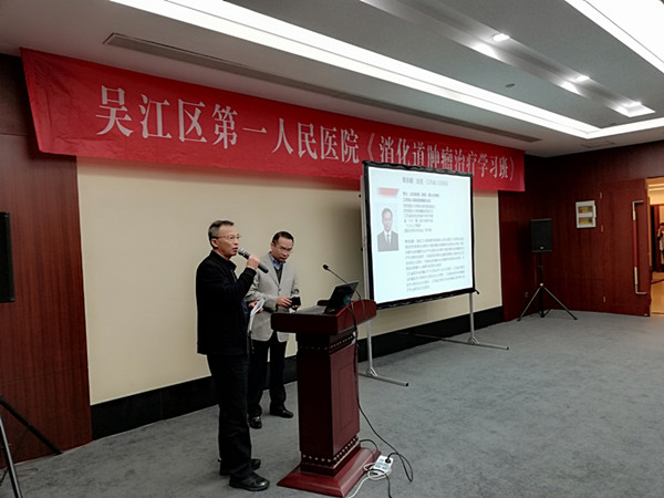 肿瘤内科在吴江宾馆3号会议室成功主办“消化道肿瘤治疗学习班”。邀请了省内和苏州市肿瘤界多位德高望重的专家到场讲课。