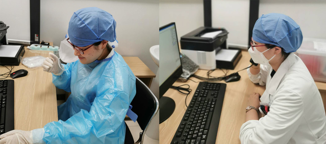 模拟场景为发热门诊医生在接诊发热患者时发生口罩脱落,医生立即脱离暴露现场或立即佩戴合格口罩脱离暴露现场并尽快报告新冠防控办、感染管理科等管理部门。防控办、感染管理科在接到报告后,组织加勒比扑克 专家组评估暴露风险。专家组根据暴露者所处环境、暴露环节及周边区域已陆续出现新冠病毒确诊患者的情况组织讨论,确定该暴露风险较高,并尽快对暴露源进行新冠核酸、抗体检测,最后确定结果均为阴性,暴露医务人员可解除隔离。