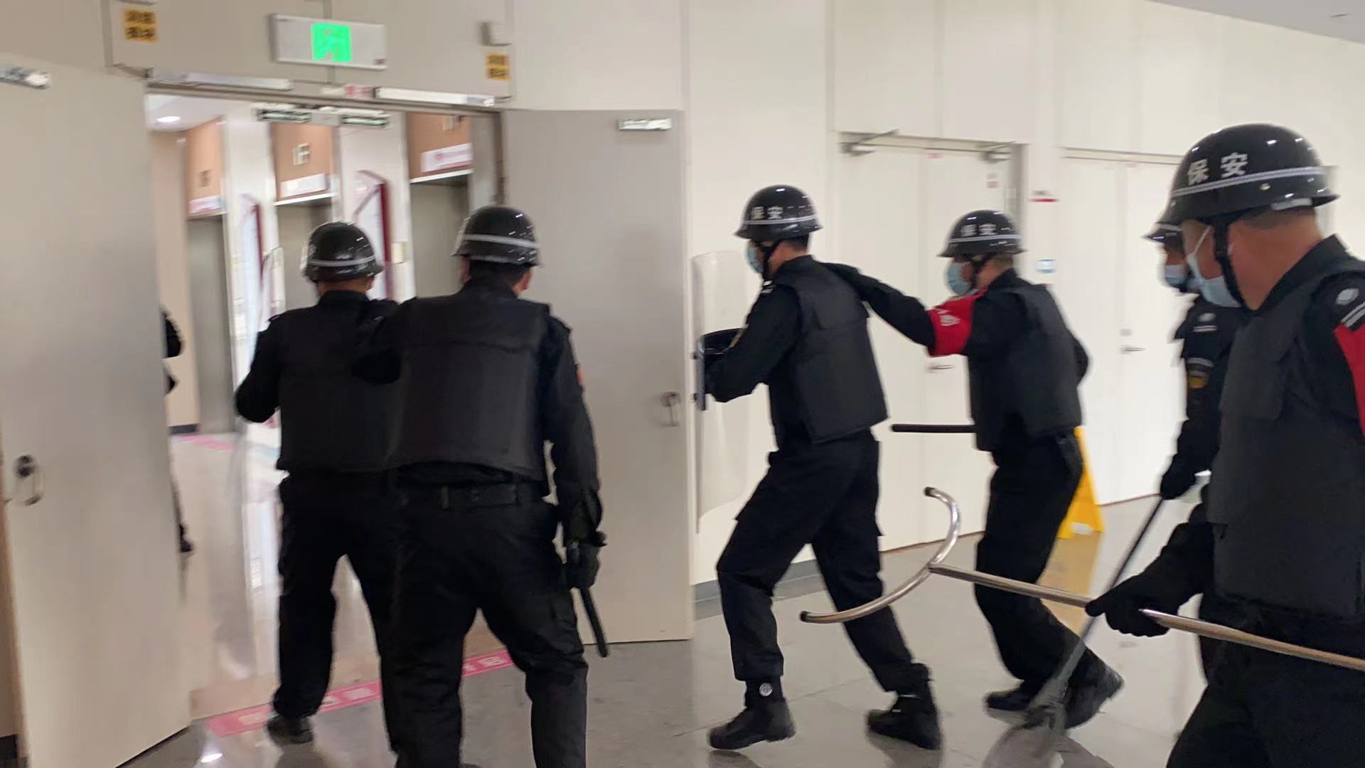 保安人员与之交谈周旋,为救援拖延时间