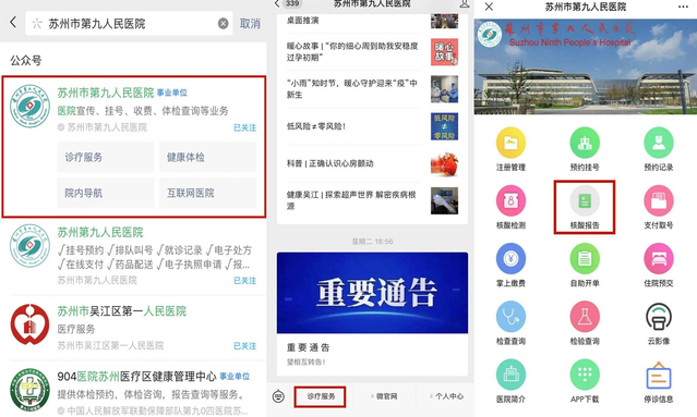 苏州九院微信公众号新增核酸报告查看和下载功能