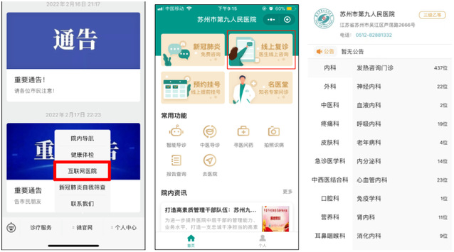 为满足市民疫情期间的就医需求,同时有效降低就医人群聚集带来的交叉感染风险,全力做好疫情防控工作,苏州九院持续推出多元化线上服务。