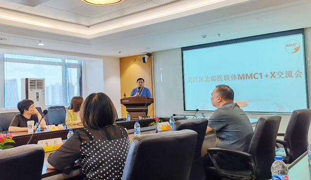 沈根海副院长对各位专家的到来表示热烈欢迎,他指出,我国是糖尿病大国,近年来糖尿病防治工作虽取得长足进步,但血糖达标率还是不高,糖尿病的慢病管理尤为重要。在全国医疗单位建设的“标准化代谢性疾病管理中心(MMC )”项目,为数量庞大的糖尿病等代谢性疾病患者提供了全新的一站式综合诊疗管理服务。苏州九院自2021年1月1日正式启动MMC,目前入组468人,利用MMC平台管理糖尿病等慢病2640人次,使糖尿病人群达标率明显提高,患者满意度明显提升。他还肯定了吴江区北部医联体在MMC运营中取得的成绩,并期望吴江区北部医联体“MMC1+X”项目发展能更上一层楼。