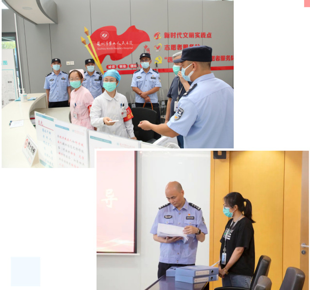 为进一步加强医疗机构安全防范工作,及时排查和消除安全隐患,有效防范和坚决遏制事故的发生,全力维护就医患者、医务人员生命安全,确保全市医疗机构安全稳定。8月17日,苏州市政法委袁梁卓、市公安局姜维雍、市卫健委周凡杰等一行11人对苏州九院进行联合安全检查。苏州九院党委副书记、副院长沈根海,副院长朱卫国及相关科室负责人陪同检查。