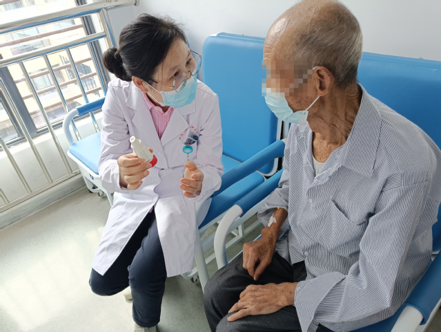 来到这里的第二天一早,我就到呼吸内科病房和科室同事一起参加查房,熟悉所有住院病人病情,并根据每个患者的病情提出个体化的诊疗方案。查房结束后指导住院慢阻肺病人正确使用吸入药物,并对患者进行健康宣教。