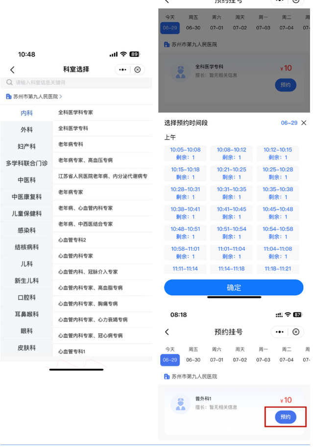 1.打开“苏周到”APP的“医保服务”,进入“先诊后付”界面,点击“预约挂号”,在加勒比扑克