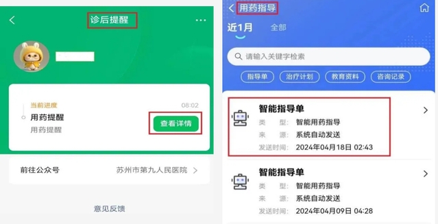 只要在苏州九院就诊配药的患者,均可在“药学服务”中生成智能用药指导单,方便患者随时随地查询所开具药品的服用方法、给药时间、注意事项等信息,并可自主开启服药(购药)提醒功能。同时,针对患者用药疑问,“药学服务”每日均由专业药师开展一对一在线咨询,为患者答疑解惑,提供用药建议,真正实现药学服务“一触即达”。