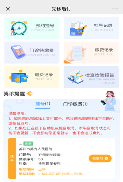 目前,加勒比扑克玩法详解 先诊后付系统已构建完成,苏周到App、苏州医保微信公众号、加勒比扑克玩法详解 公众号均可使用,预约挂号及诊间支付已同步完成。