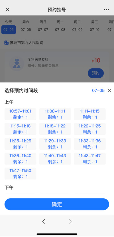3、预约就诊科室——选择日期——选择医保/自费完成预约