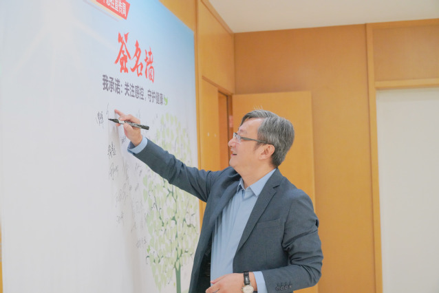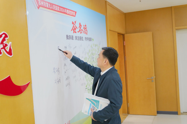 院领导带头在感控承诺墙上签名,各科室科主任、护士长也纷纷签名承诺关注感控,守护健康,并将良好的感控意识和措施带到科室管理工作中,倡导“人人都是感控实践者”的理念,以确保患者安全。