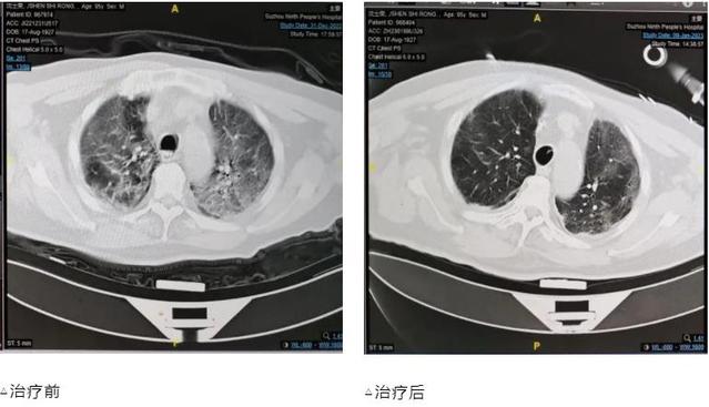 住院期间,患者新冠病毒检测阳性,先后出现了高热40℃不退、肝肾功能不全、心肌损害、严重的腹泻、电解质紊乱、低蛋白血症等危急情况,在新冠救治专家组组长吴巧珍的指导下,经过董凌云主任医师、张剑锋副主任医师、郑江南副主任医师团队的精心治疗,张露艳护士长护理团队的细致护理,这名患者度过了一道又一道难关,近期复查胸部CT感染已明显吸收好转,脉氧明显改善,并于1月10日顺利脱机拔管。