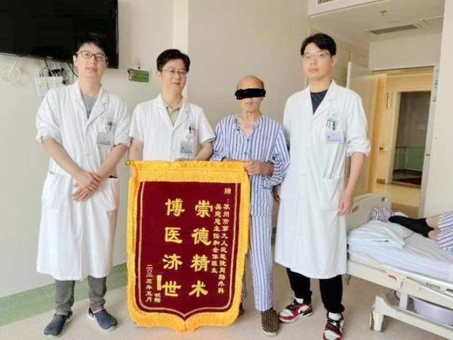 腹腔镜直肠癌手术具有患者创伤小、术后康复快、住院时间短等优点。老年男性骨盆狭窄,且肿瘤位置低,如何确定肿瘤下切缘且使用闭合器切断直肠是腹腔镜下低位直肠癌根治术的难点。在苏州九院手术室引进先进的手术设备和器械下,吴建忠主任医师团队顺利为该患者完成了直肠癌根治术,超低位吻合、保肛,且未行预防性回肠造口,避免了二次手术。术后,患者恢复良好,未发生严重并发症,顺利出院。