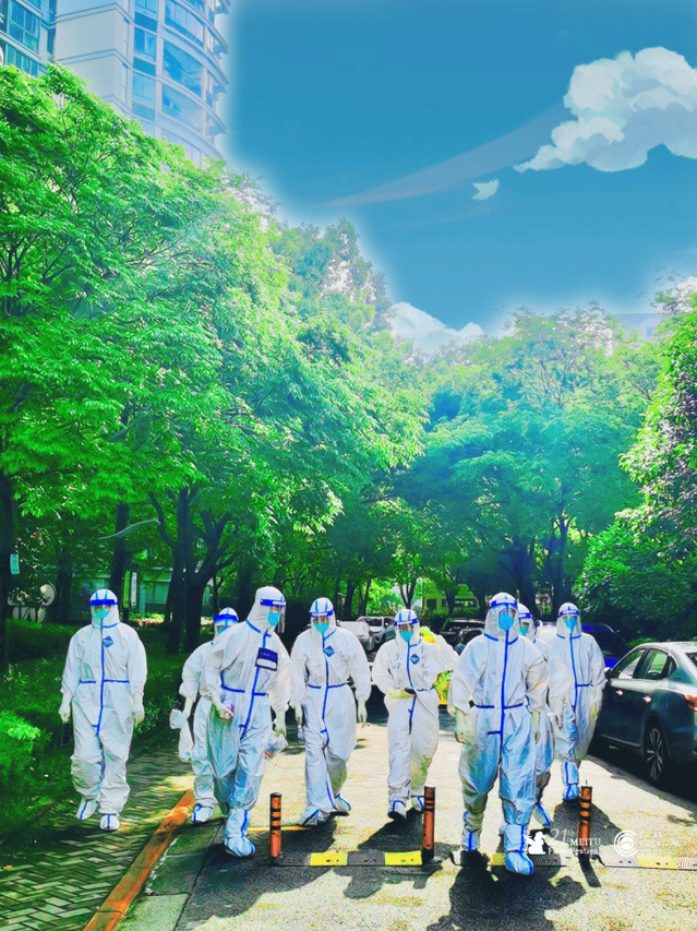 这几天上海天气热了,下雨后天气更显闷热。为保证有效防护,防护装备每三个小时就要更换。队员们通力合作,互相支援,社区工作人员也是配合默契,高效率完成了采样任务。这些天,我们也得到了当地居民的高度评价,收获了友谊。