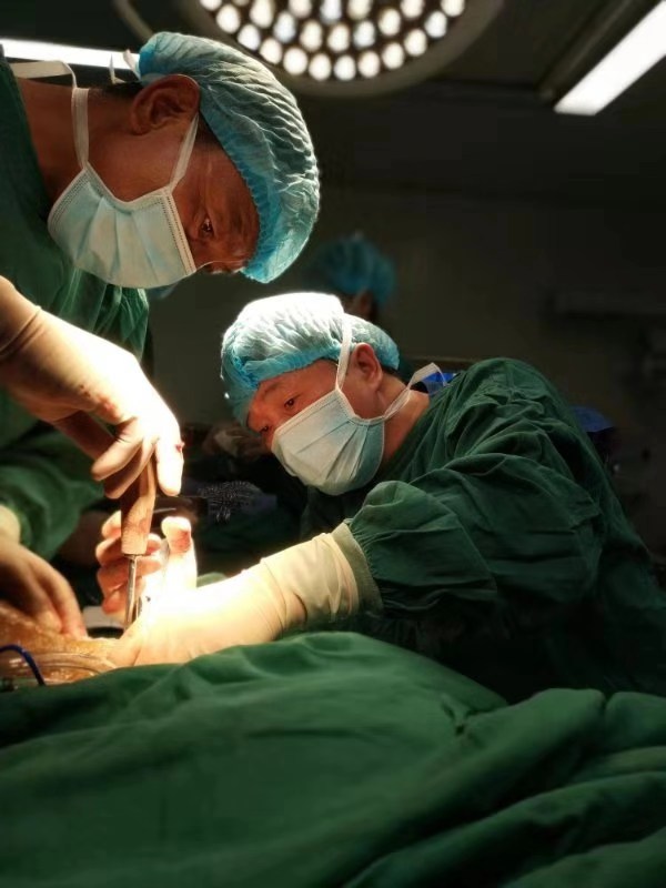 手术从下午2点开始。虽然林周县人民加勒比扑克 手术室没有配备C臂机,也缺乏理想的全麻药物,但李金彪从麻醉前评估到备药、用药、插管、术中监护,再到麻醉机、监护仪的使用和各种注意事项,都进行了详细的解惑答疑,而金正帅则从术前评估、手术方案、摆体位、消毒、术中解剖、术后关切口、包扎伤口和各环节注意事项,进行了规范的示范和解读。经过一个多小时的努力,4位专家临时组成的手术团队,以高超的技能、精湛的医术和默契的配合,为大家演示了一台成功的手术。