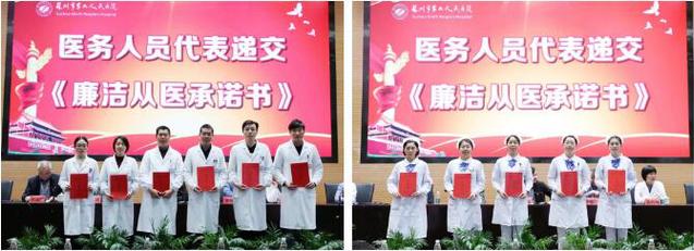 此次活动全院各科室每一位职工都郑重在《廉洁从医承诺书》签下自己的姓名,会上,11名医护人员代表向沈根海副书记递交了承诺书。
