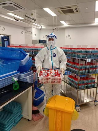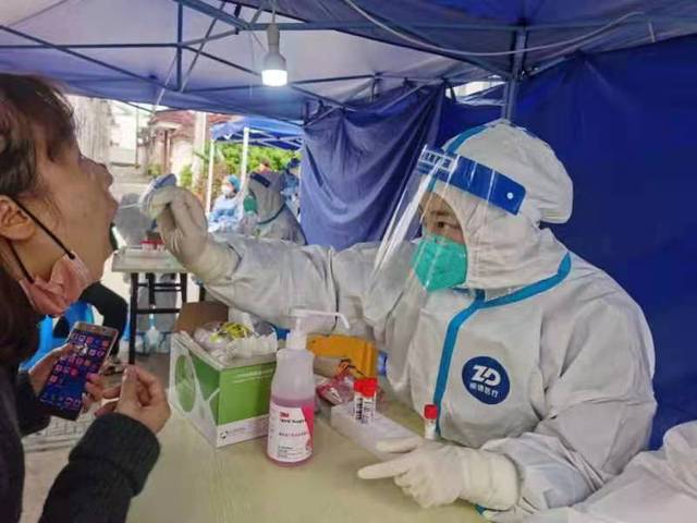 3月28日星夜集结,驰援上海。从接到任务的那一刻,那种作为医者的使命感和责任感油然而生。闭环的日子里,我们两点一线奔走于隔离酒店和采样点之间。一方小小的采样桌,你的对面每天都会站着不同的人需要你进行核酸采集。当他站到你面前、摘口罩、采样、再到重新戴上口罩,可能就短短的十几、二十秒时间。但这短短的十几、二十秒时间里,总会有温暖你的瞬间,消除你一天的疲惫。有人会和你说“谢谢”、有人会说“辛苦了”,有人会询问“你们是哪里来支援的?”当听到我们是从苏州来的时候,有人会激动地说“我老家也是苏州的!”。印象最深的是一个七八十岁的老奶奶在家人的搀扶下来做核酸,做完之后笑眯眯地和我说,“小姑娘,你人真好,好人有好报,祝你活到100岁”。