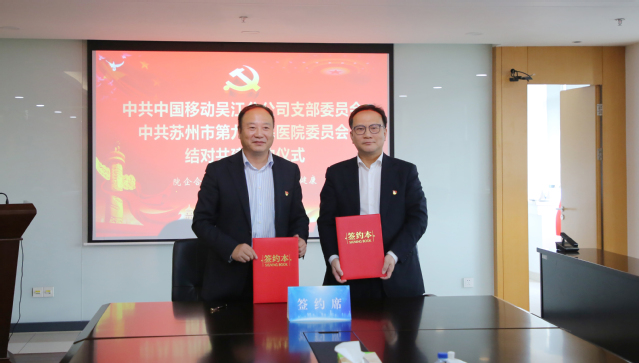 为深入贯彻党的二十大精神,全面落实新时代党的建设总要求,11月22日,苏州九院党委与中国移动吴江分公司支委开展党建共建活动并签署结对共建协议。区卫健委党委书记、主任,苏州九院党委书记沈宇及院党委委员、党员代表,中国移动吴江分公司党支部书记、总经理郑炜及公司党员代表参加了活动。签约仪式由苏州九院党委副书记、纪委书记庾勍主持。