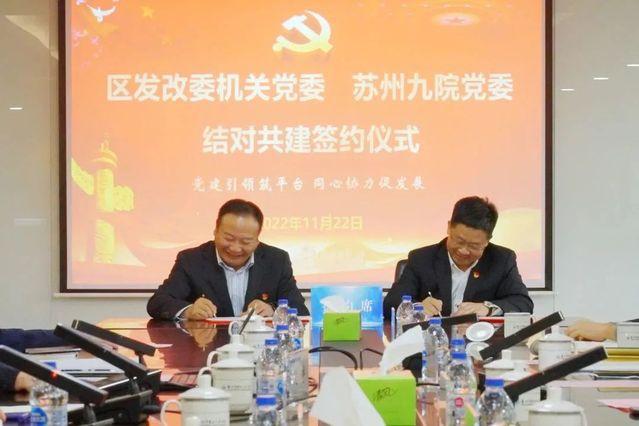 区卫健委党委书记、主任,苏州九院党委书记沈宇表示,区发改委和苏州九院结对共建是对党的二十大精神的贯彻落实,是新形势下不断加强基层党组织建设,推动党建工作不断迈上新台阶的有效途径。通过结对共建,双方党组织可以互相交流、互相学习并借鉴对方党建工作的好方法、好经验,增强党建工作的针对性和实效性,充分发挥基层党组织先锋模范作用,使党建工作真正发挥“推动发展、服务群众、凝聚人心、促进和谐”的作用,推动各项工作顺利开展。