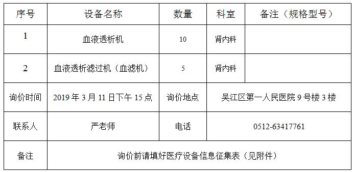 血液透析机等项目的询价公告
