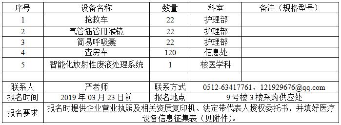 抢救车等项目的采购报名通知