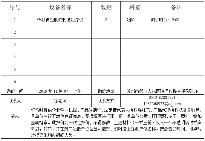 低频神经肌肉刺激治疗仪 项目的询价公告