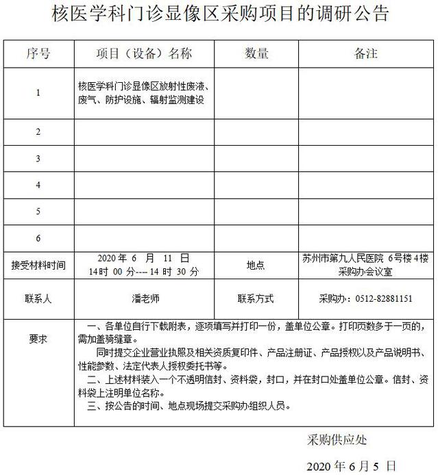 苏州九院 核医学科 门诊显像区采购要求.xls