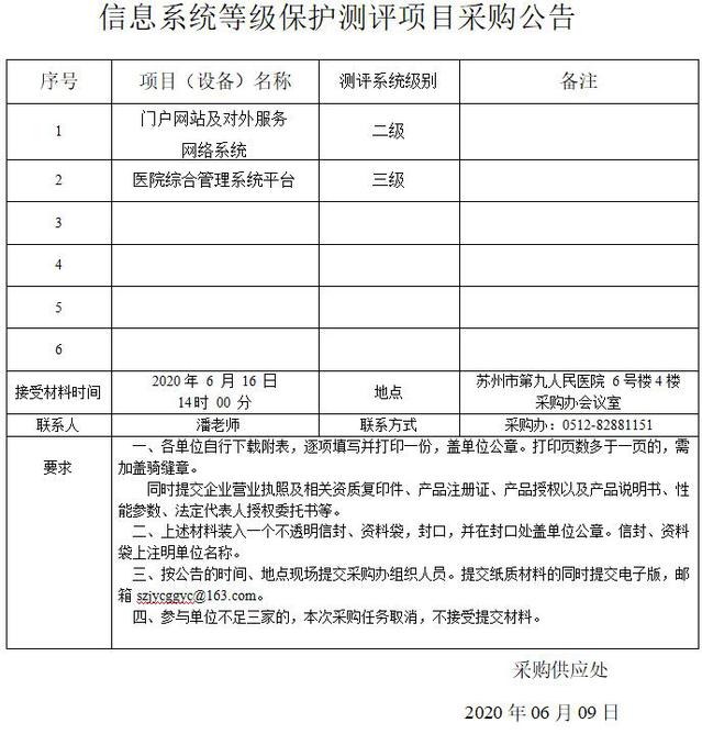 信息系统等级保护测评项目采购公告