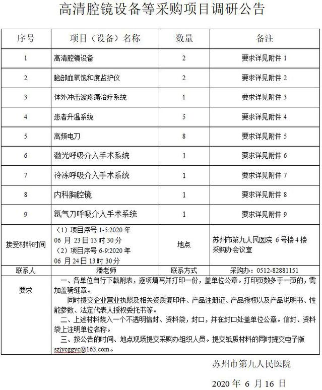 高清腔镜设备等采购项目调研公告