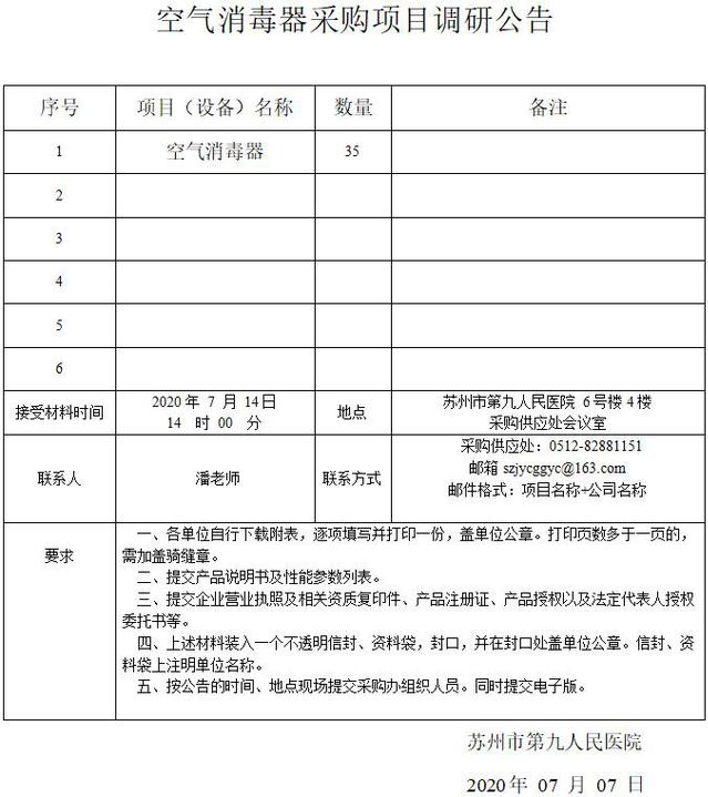 《医疗设备维修信息表》(空气消毒器采购).xls