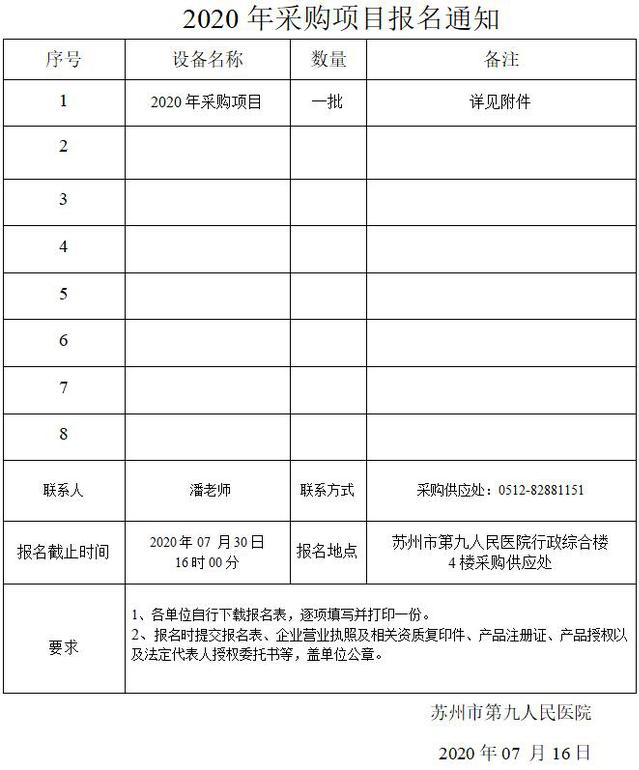2020年采购项目报名通知