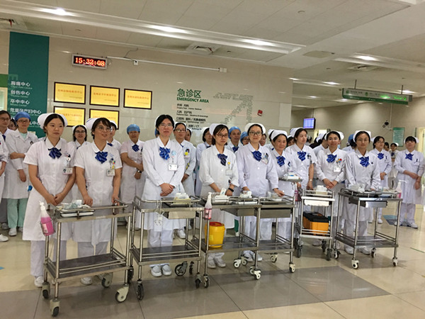 各病区的应急护理人员,按要求带着相关急救物品器械,快速来到了急诊大厅待命,听从现场指挥的安排。