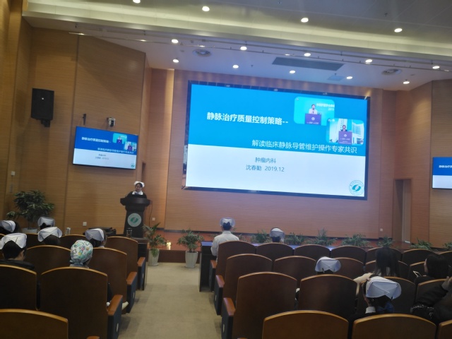 培训会上,沈春勤解读了中华护理学会静脉治疗专业委员会2019年7月发布的《临床静脉导管维护操作专家共识》,详细讲解了《共识》中的冲管与封管、敷料更换、导管固定、穿刺部位保护、医用黏胶相关性皮肤损伤、输液接头、导管拔除、教育培训、感染管理、并发症等内容,强调了每一根静脉导管都是保障疾病治疗的生命线,护士是落实共识的主体,作为静疗专科从业者,要将共识的内容不折不扣的落实和推广,真正成为临床护士的实践指导,充分发挥为病人静疗安全保驾护航的作用。