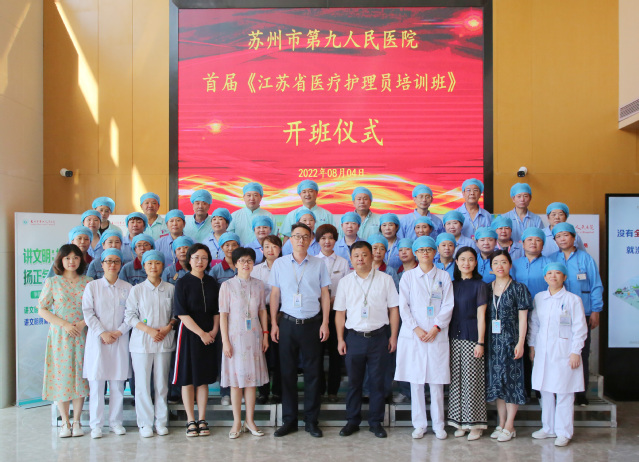 8月4日上午,苏州九院首届“江苏省医疗护理员培训班”正式开班。苏州九院副院长叶福龙、护理部主任肖佩华、总务处主任钱雄杰、护理部副主任徐敏玲、护理部副主任李莉、全体授课老师及医疗护理员培训学员参加活动。