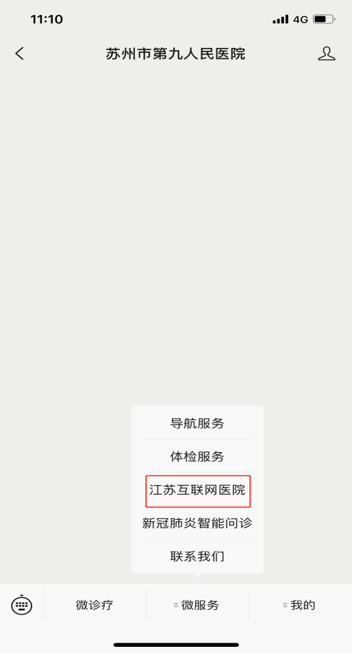 2.进入公众号后,在【微服务】菜单中,选择【江苏互联网加勒比扑克 】。