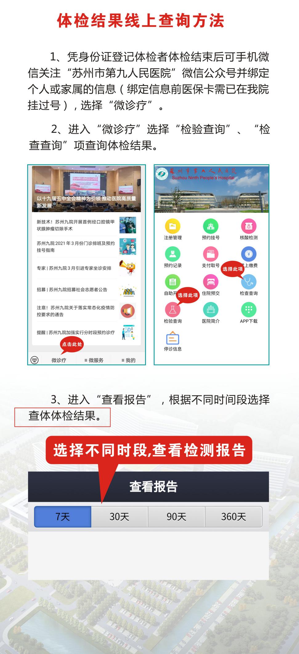 这次也是苏州九院推出微信公众号体检报告线上查询功能后,再次推出的线上便民健康管理服务。作为今年健康管理满意度提升的重要环节,真正打通了检后线上管理的“最后一公里”,实现了体检到解读八小时内完成的目标,同时避免了体检者来回奔波的不便。