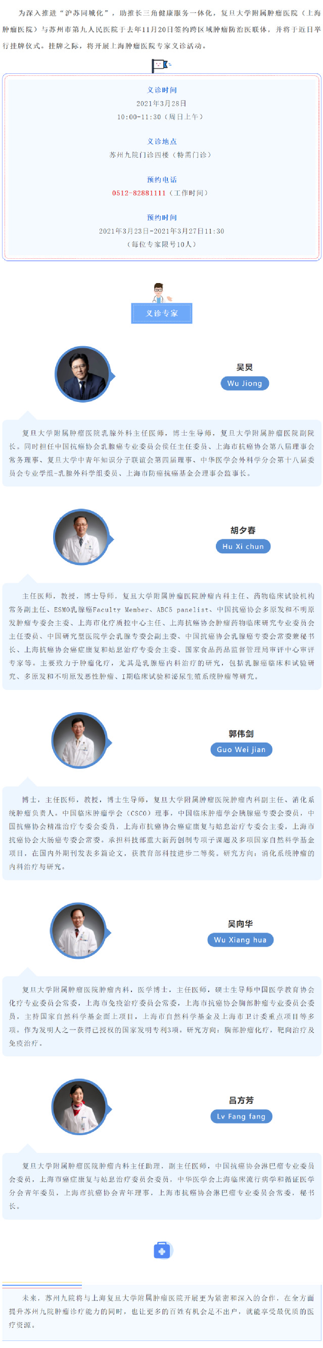 践行沪苏同城化 上海肿瘤加勒比扑克 专家来苏州九院义诊