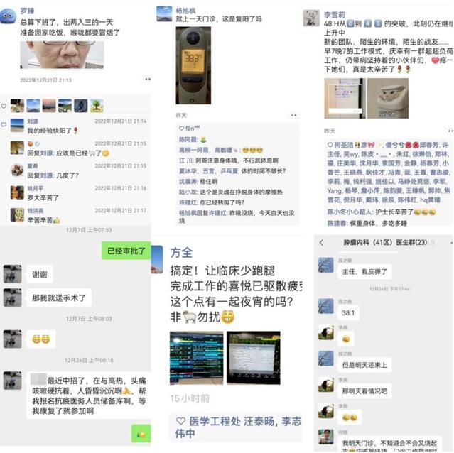 有的科室全员带病上岗,有的医生烧到39℃多,忍着高烧和全身酸痛仍然完成了多台手术,还有的医生出现症状了也不测抗原,因为科室已经快没人了,实在不敢阳。